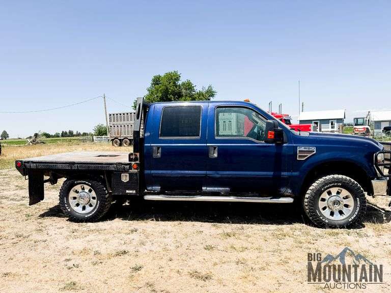 ***TITLED*** 2008 Ford F350 Lariat Super Duty Crew Cab Pickup, Showing 186,567 Miles, 6.4 L Diesel Engine, Auto Transmission, 295/70R18 Tires, Front Ranch Hand Grill Protector, 4'x87" Flat Bed, (blue), VIN:1FTWW31R68EE03745