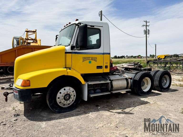 ***TITLED*** 2000 Volvo 3 Axle Day Cab Semi, Miles Unknown, Cummins N14 370 Hp Engine, 10 Sp Transmission, (TRANSMISSION NEEDS WORK), 4 Bag Air Suspension, Wet Kit, Rear Pintle Hitch, 295/75R22.5 Tires, (Yellow), DOES NOT RUN, VIN:4V4MD2JF3YN786173