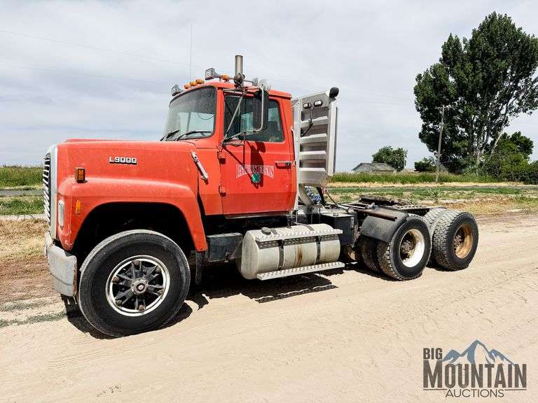 ***TITLED***1988 Ford L9000 3 Axle Semi, Showing 181,151 KM, Cummins 365 Engine, 15 Sp Transmission, 4 Bag Air Suspension, 11R22.5 Tires, Wet Kit, (red), VIN:1FDYU90W8JVA18746