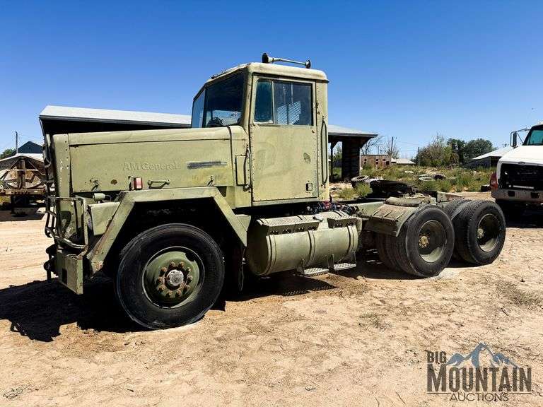 ***TITLED*** 1983 GMC General M915 3 Axle Day Cab Semi, Showing 87,333 Miles, Cummins 400 Engine, Auto Transmission, Hendrickson Spring Suspension, 11R22.5 Tires, Wet Kit, Rear Pintle Hitch, Rear Air Hook Up, DOES NOT RUN, (green), VIN:1UTSH6687DS000337, DELAYED TITLE