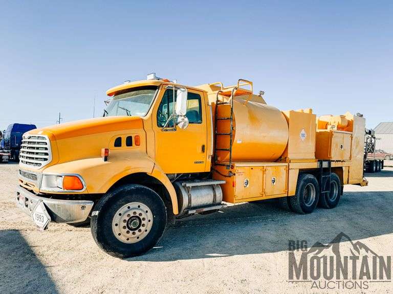 ***TITLED*** 2001 Sterling Triple Axle Fuel/Lube Truck, Showing 153,525 miles, CAT C-12 Engine, RT/RTO-8LL Transmission, 4 Bag Air Ride Suspension, 11R22.5 Tires, Aluminum Wheels, 5 Side Toolboxes, 1500 Gallon Front Tank w/Split 250 Gallon & 1250 Gallon w/Hose & Handle, 75 Gallon Water Tank w/Hose & Reel, 75 Gallon Anti Freeze Tank w/Hose & Reel, 100 Gallon 10 W Oil Tank w/Hose & Reel, 100 Gallon 30W Oil Tank w/Hose & Reel, 100 Gallon 10-40 Oil Tank w/Hose & Reel, 100 Gallon Lube Gear Oil Tank w/Hose & Reel, 100 THD Fluid Oil Tank w/Hose & Reel, 250 Gallon E Vac Tank w/Hose & Reel, 15 Gallon Grease System w/Hose, Quincy QTS-5 Dual Head Air Compressor w/10 Gallon Air Tank, Rear Vice, (Yellow) VIN:2FZXEWEB21AH61458, stock 45